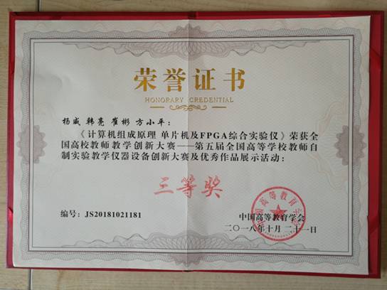(通讯员:杨威)日前,第五届全国高等公司教师自制实验教学仪器设备创新大赛在成都落幕。物理与sunbet申搏杨威、韩亮、崔彬、方小平等老师研发的《计算机组成原理、单片机及FPGA综合试验仪》获大赛三等奖。《计算机组成原理、单片机及FPGA综合试验仪》具有“一机多用”、 “一体机化”、“可调性强”和“可视性强”等特点,在两年的教学实践中,有一千多名本科生利用该实验仪完成了微机原理和系统设计等实验,并取得了非常...