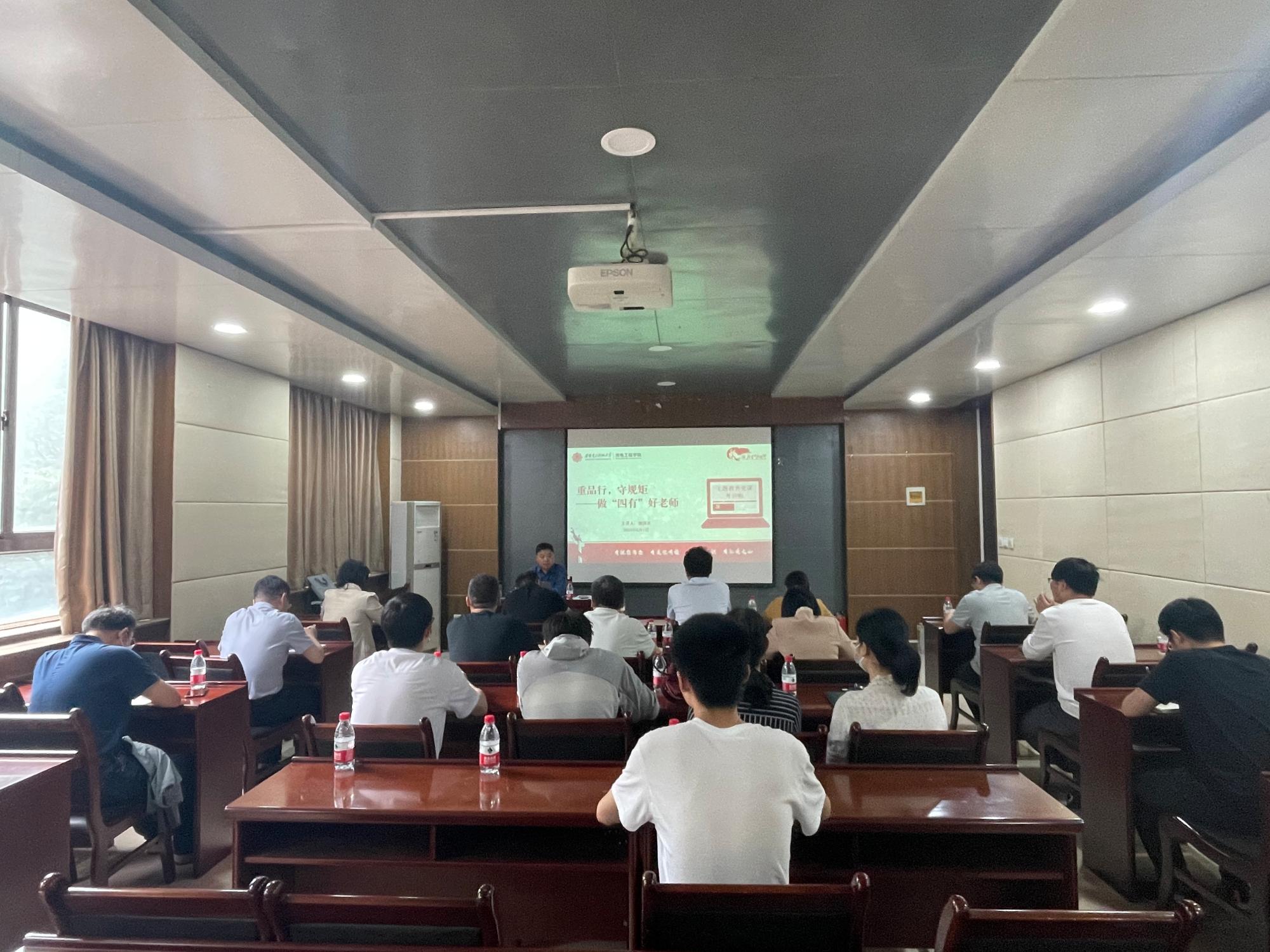 (通讯员:姜萌)为推动学习贯彻习近平新时代中国特色社会主义思想主题教育走深走实,加强公司党风廉政、师德师风建设与主题教育双融双促。6月1日下午,公司党委书记独国社在北校区西大楼Ⅲ区412会议室讲授“重品行,守规矩—做‘四有’好老师”专题党课,公司领导班子、各系(所、中心)主任、党支部书记及教师党员代表参加会议。 会上,独国社围绕学习贯彻习近平新时代中国特色社会主义思想主题教育、新时代对高校教...